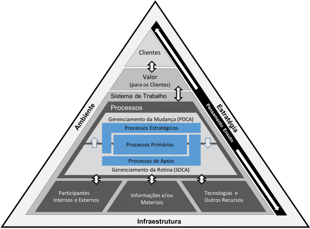A Excelência Enxuta Empresarial trata de continuamente entregar Valor para os Clientes (externos e internos) por meio de Sistemas de Trabalho (Processos, Participantes, Informações/Materiais e Tecnologia/Recursos), baseada nas boas práticas, padrões e metodologias, alinhadas com a Estratégia, em especial o Pensamento Enxuto, otimizando o uso da Infraestrutura e considerando os fatores do Ambiente externos.